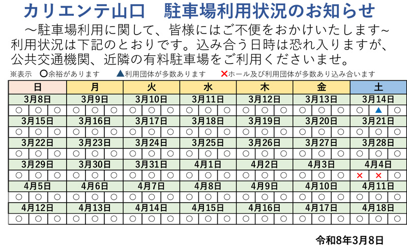 カリエンテ山口からのニュース・お知らせです。